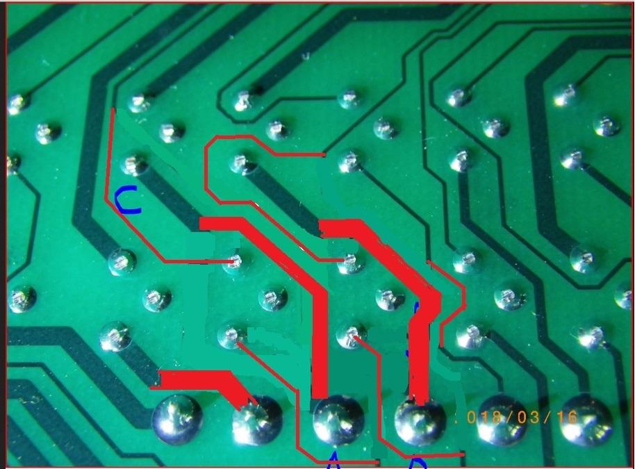 Generell scheint man sich ja beim Platinenlayout des SGs nicht besonders viel Mühe gemacht zu haben, mir fallen als erstes die beiden Leiterbahnen mit den unterschiedlichen Querschnitten ins Auge. Sowas geht eigentlich gar nicht und der Designer sollte sich schämen, erst recht wenn es auch anders geht.