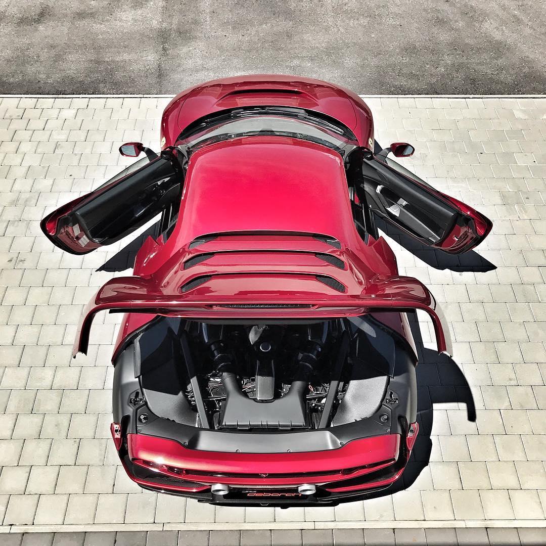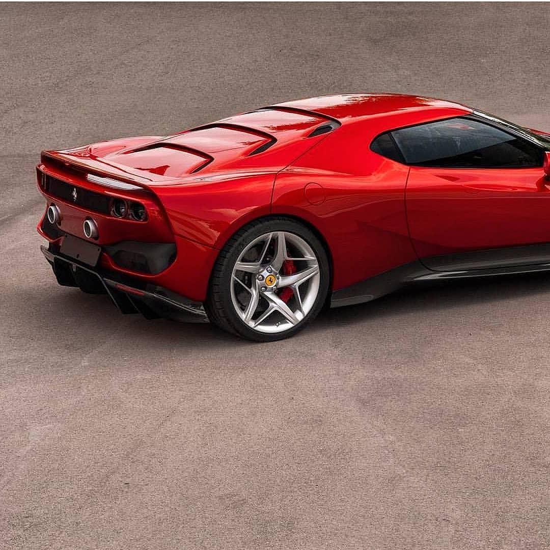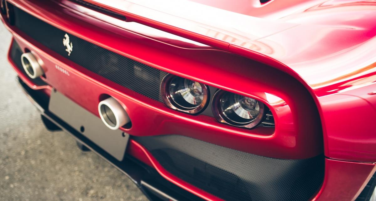The all-new bodywork, in a newly conceived three-layer metallic red, marks a radical departure from the language aesthetic of the donor car. The twin-turbo, twin-intercooler set-up of the award-winning 488 GTB inspired the team to reference the mighty F40 as an icon from which to instruct the project's general direction.