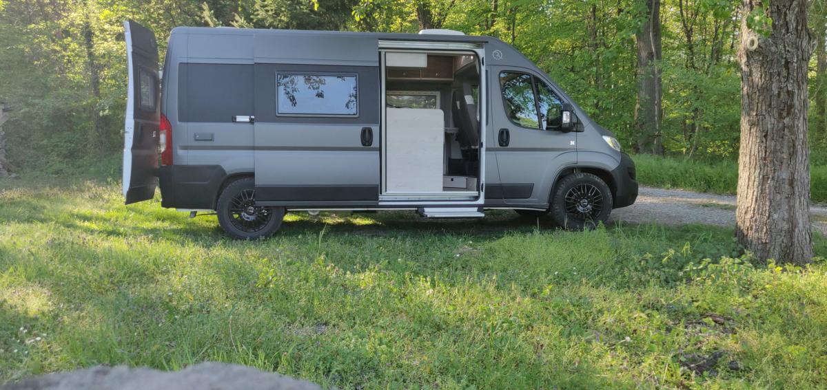 Eine Markise wollten wir definitiv nicht. Erstens ist es Gewicht und zum zweiten erkennt man dann sofort, dass es ein Reisemobil ist. Ich habe noch nie ne Markise gebraucht. Das Beste ist, wenn wir die Türen hinten öffnen, können wir aus dem Bett heraus (Lounge-Funktion) unsere Blicke im Liegen in die Weite streifen lassen.