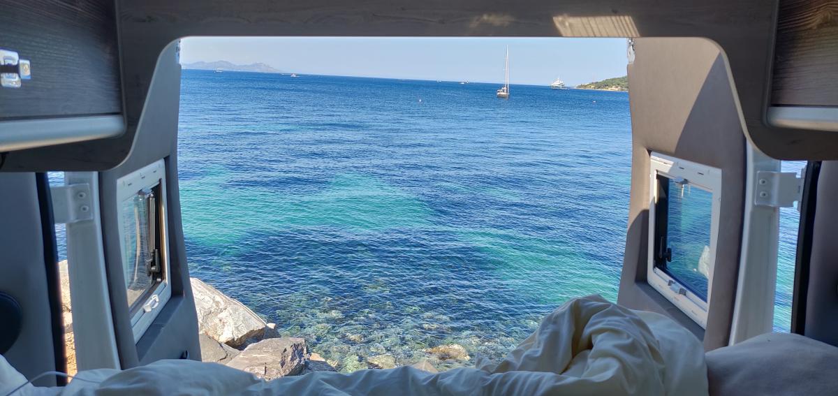 Fast überall frei gestanden. Das schönste ist: Man fährt rückwärts an die Aussicht und macht die Hecktüren auf. So zum Beispiel in Saint Tropez. Man kann dann direkt aus dem Bett das Meer beobachten.
