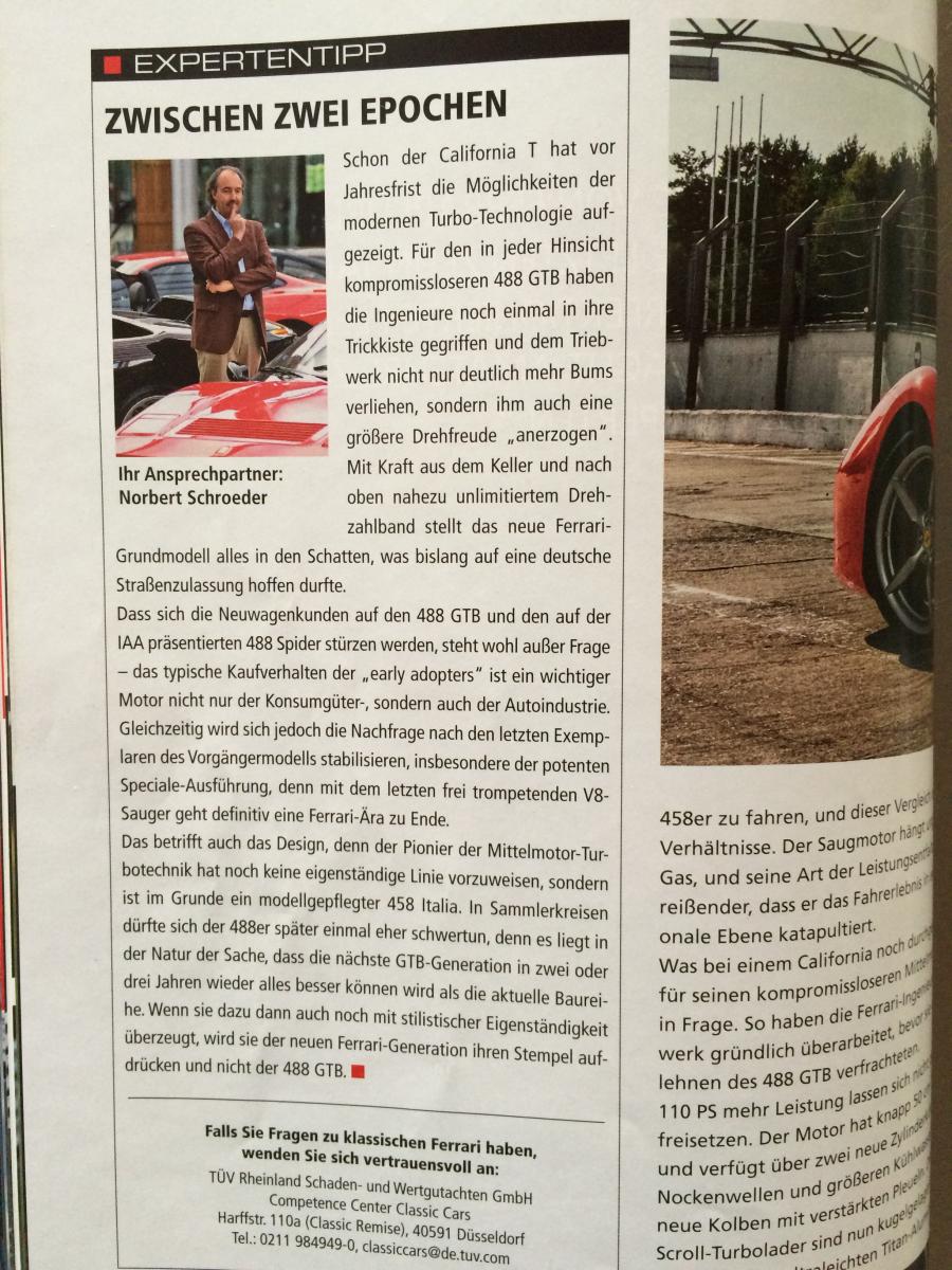 Hallo zum Artikel muss ich folgendes sagen, es gibt dazu zwei verschiedene Meinungen, die einen sagen das ist der letzte noch mit legalem Sound, mit noch ohne großen Aufwand so ein Auto aufzuheben, ohne immense Ausgaben für Unterhalt usw. Es weiß halt keiner was da mit den Hybridfahrzeugen auf lange Sicht hin mit der Haltbarkeit Batterien, Lautstärke, Abgasvorschriften, Elektronikanteil wirklich kommt. Sollte es nicht so schlimm kommen freue ich mich wieder auf ein neues Fahrzeug wenn nicht kann ich das jetzige noch viele Jahre genießen. Ich denke egal ob 458 oder 488 man hat mit keinem etwas falsch gemacht, vor allem man kann schon fahren und muss nicht auf die Zukunft warten. Übrigens man wird ja auch nicht jünger....also nicht zulange überlegen und Spaß haben.