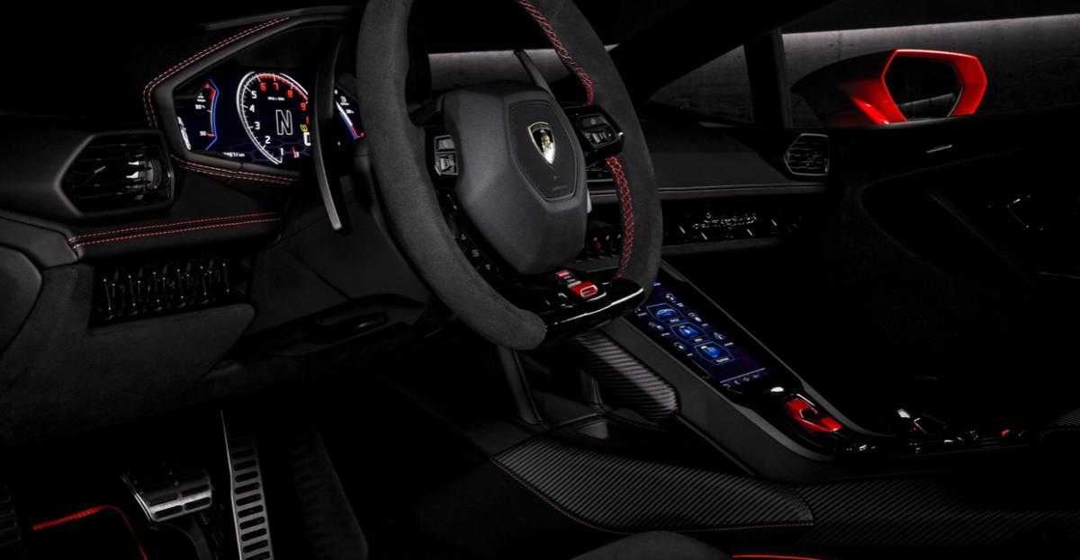 The interior perfectly mirrors the evolutionary design of the Huracán EVO.