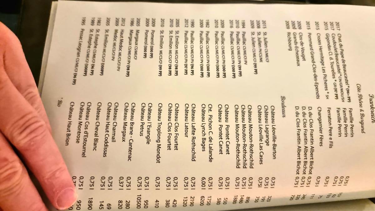 Nein. Wer so Weine kalkuliert… Den 1982er Cos d‘Estournel gibts bei Ungerweine für knapp über 400€, teilweise ist der unter 300 zu bekommen. Warum ich dafür knapp 1000€ bezahlen sollte, erschließt sich mir nicht. Gerne mit Aufpreis für Lagerung, Risiko und Korkgeld, aber eine Standardgetränkekalkulation bei sowas… da fühle ich mich veräppelt.