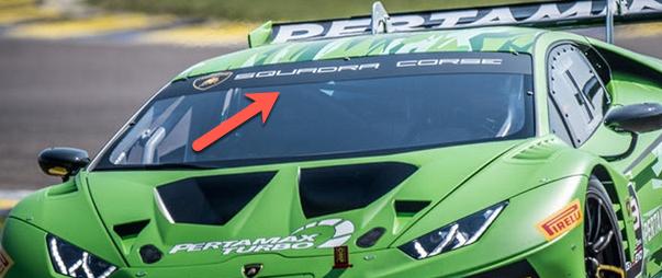 Ein kleines i-Tüpfelchen plane ich allerdings noch: So ein Sonnenschutz (oberer Rand Windschutzscheibe) mit Lamborghini Wappen und Squadra Corse drauf. Am Besten in Schwarz, mit farbigem Lamborghini Wappen und rotem Squadra Corse Schriftzug, vielleicht sogar in den Farben der italienischen Flagge, mal sehen. Keine Ahnung, ob der Folierer so etwas macht und wie es aussehen könnte (siehe Foto...evtl. eine Möglichkeit) aber ich habe mal so ein Audi Sport Sonnenschutz auf einem R8 gesehen und das sah wirklich gut aus.
