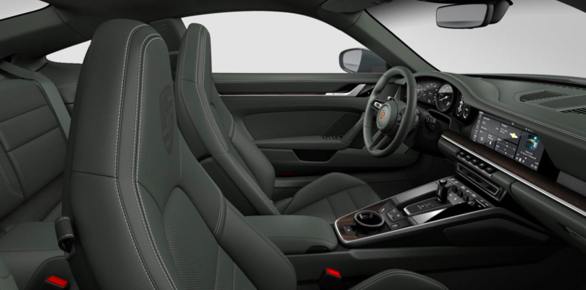Schaut im Konfigurator ein wenig dreckig(er) aus, aber der täuscht ja ohnehin immer. Es gibt übrigens auch grünes Leder, silberne Fensterschachtleisten, ein bisschen Holz und die bereits erwähnten dunklen Bremssättel. Herr @hugoservatius, wäre das nicht ein 911 nach Ihrem Geschmack?