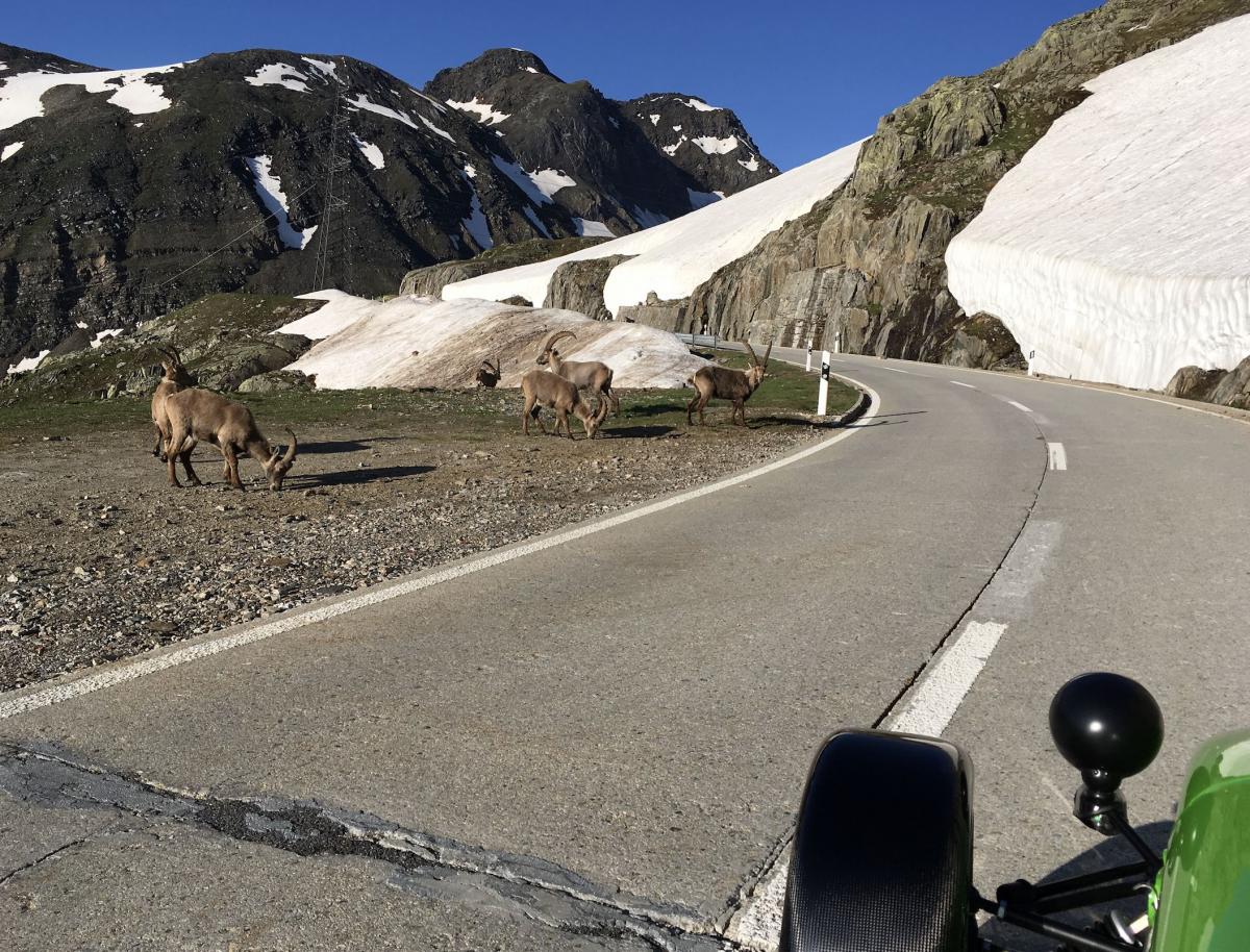 Heute Morgen früh am Nufenen - kein Verkehr, dafür Steinböcke! Beindruckend.