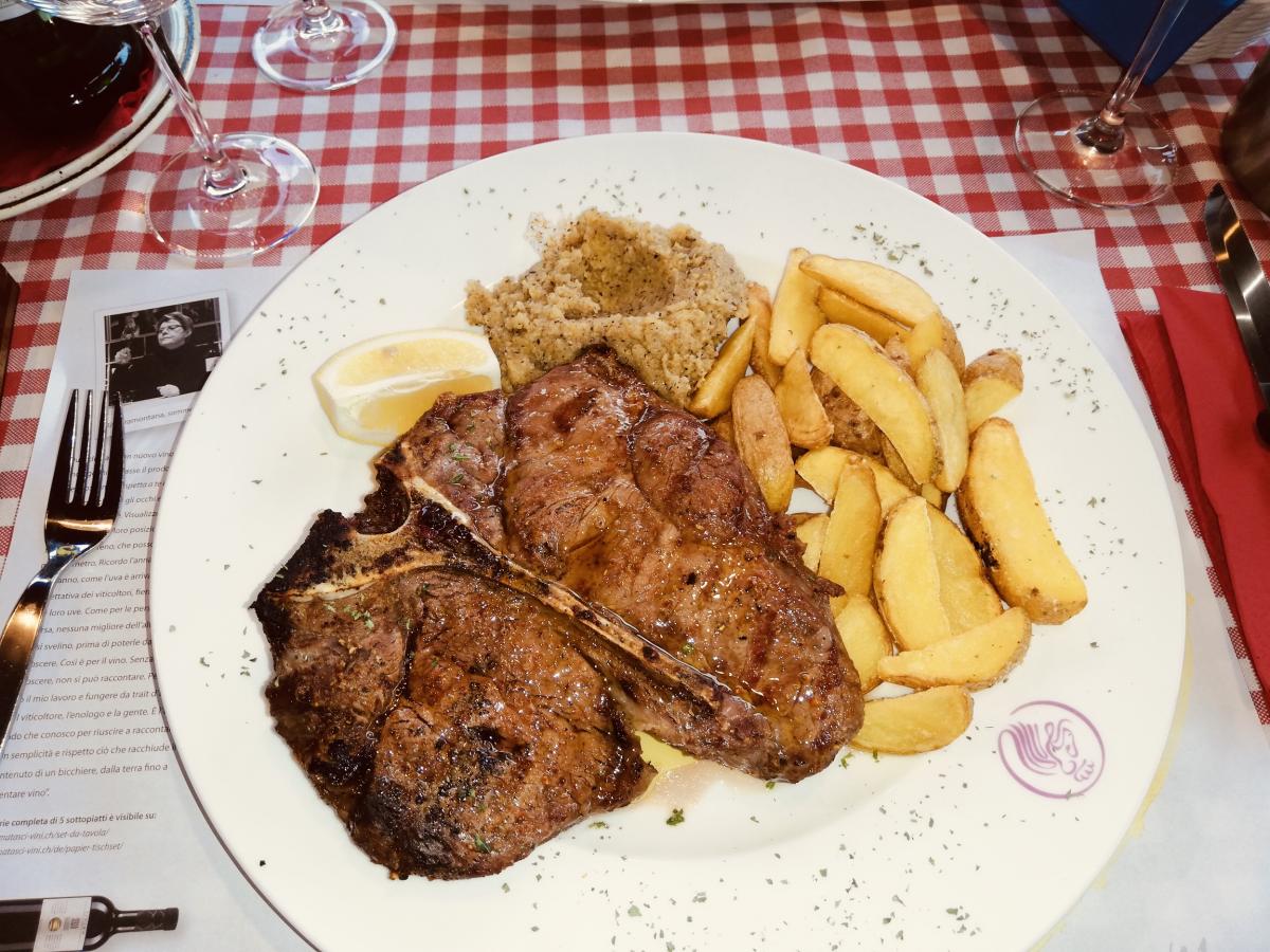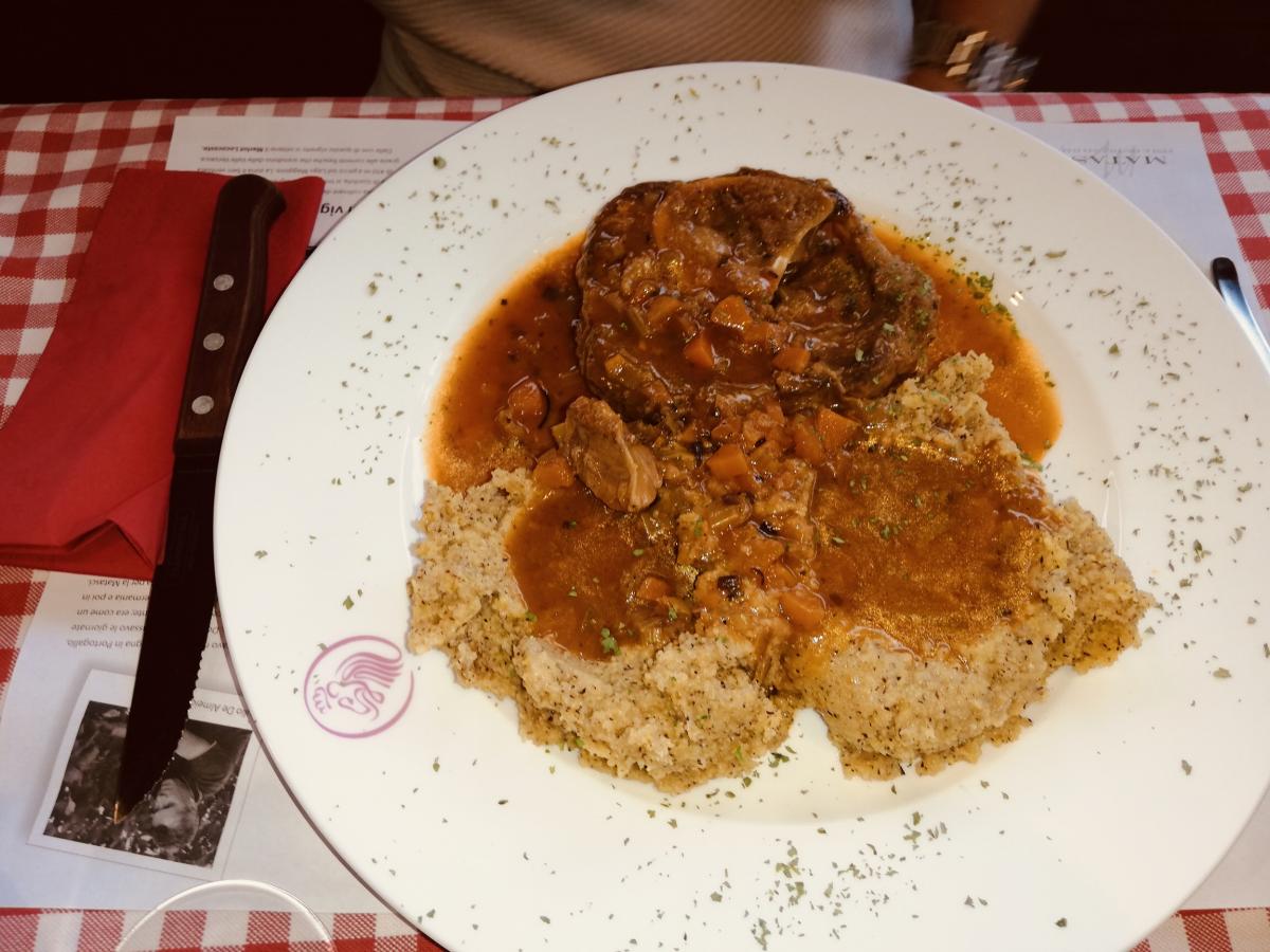 Es ist wieder so gut wie vorher. Bei Karins Osso Bucco traute man sich nicht laut zu sprechen, da sonst das Fleisch vom Knochen abfiel. Und mein Costata Fiorentina hatte herrliche Röstaromen, richtig frisch vom Grill. Und das Polenta war ein echtes Tessiner Polenta.