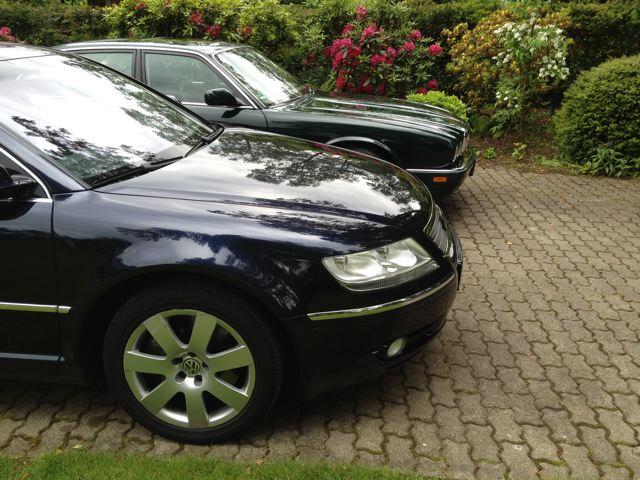 Der XJ300 lang und schlank, der Phaeton hat den Kohl'schen Wohlstandsspeck.