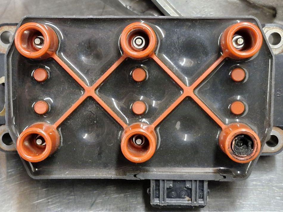 ...scheint das gleiche Prinzip wie beim 348 zu sein, d.h. die ggü. liegenden Anschlüsse sind jeweils durch eine Sekundärspule verbunden und zünden gleichzeitig: ein Zylinder im Kompressionstakt, der andere im Auslasstakt, und bei der nächsten KW-Umdrehung umgekehrt. Dann könnte man die Kabel an diesen Anschlüssen auch vertauschen.