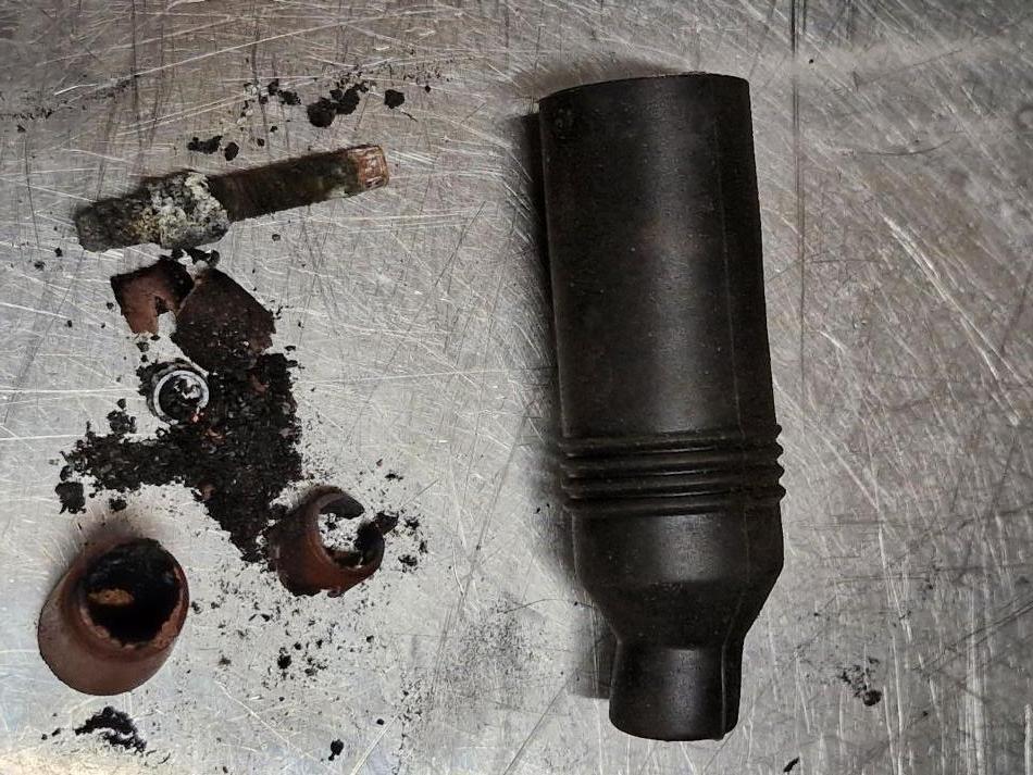 Leider war die Kontakthülse des Steckers regelrecht festgebrannt Mit einem zahnärztlichen Kugelkopffräser habe ich die Hülse seitlich aufgefräst und letztendlich heute ab bekommen.