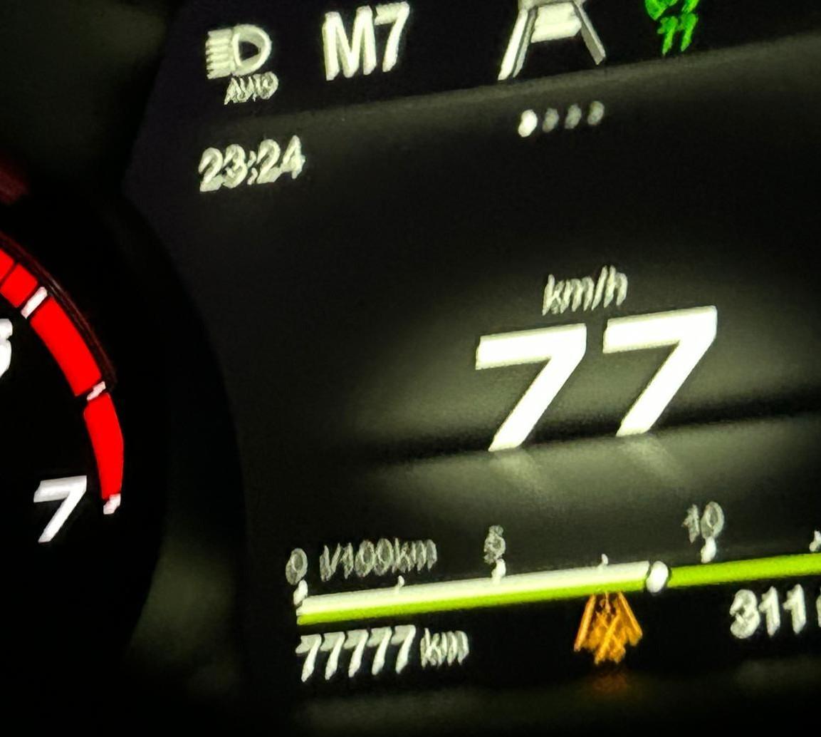 Die Giulia war von ihrem Glück offenbar selbst so berauscht, dass sie - trotz Tempomat auf 77 - im 7. Gang auf 78 gehopst ist. Bei 7,7 Liter Momentanverbrauch. Versteht sich...