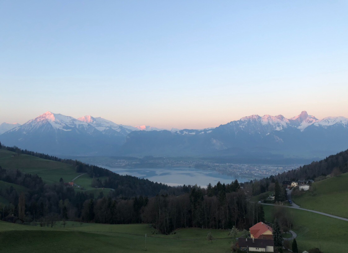 Die Aussicht kenne ich, gehört zu meinem erweiterten Jogginggebiet. Kanns aber nicht ganz lokalisieren, irgendwo zwischen Goldiwil und Heiligenschwendi?