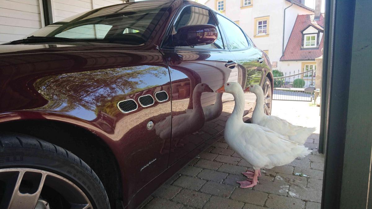 Im Sommer erscheint sie dann nachts auf der Terrasse. Sie sitzt dann vor der Garagentür hinter der sich ein Ferrari verbirgt. Ich habe sie noch nicht reingelassen, nachher will sie auch noch fahren.