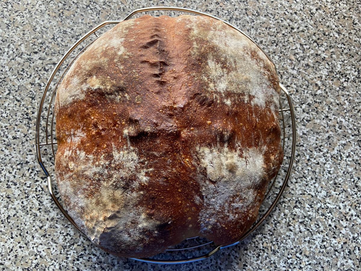 Und wieder mal ein herzhaftes Bauernbrot aus dem Ofen geerntet. Nur 1 g Hefe - sehr bekömmlich 👌