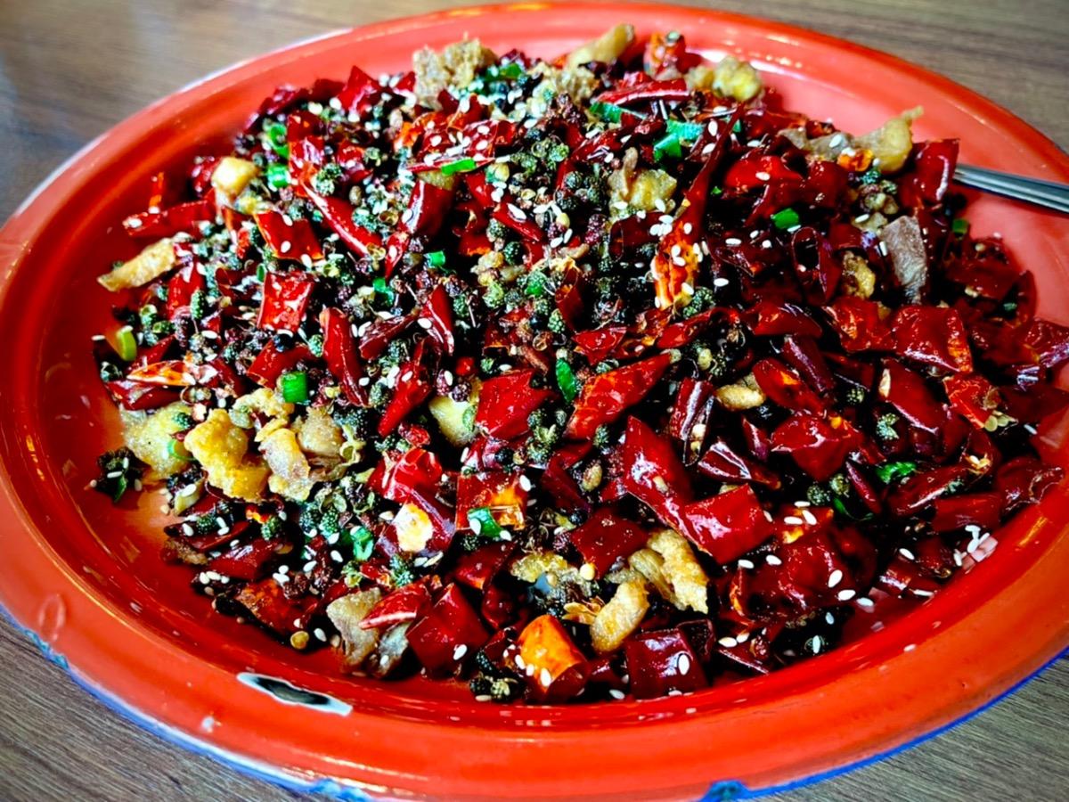 Danach meinten sie, dass die Chillies beim Hähnchen zu Aromatisieren gedacht seien, man würde eigentlich nur die Hähnchenstücke herauspicken.