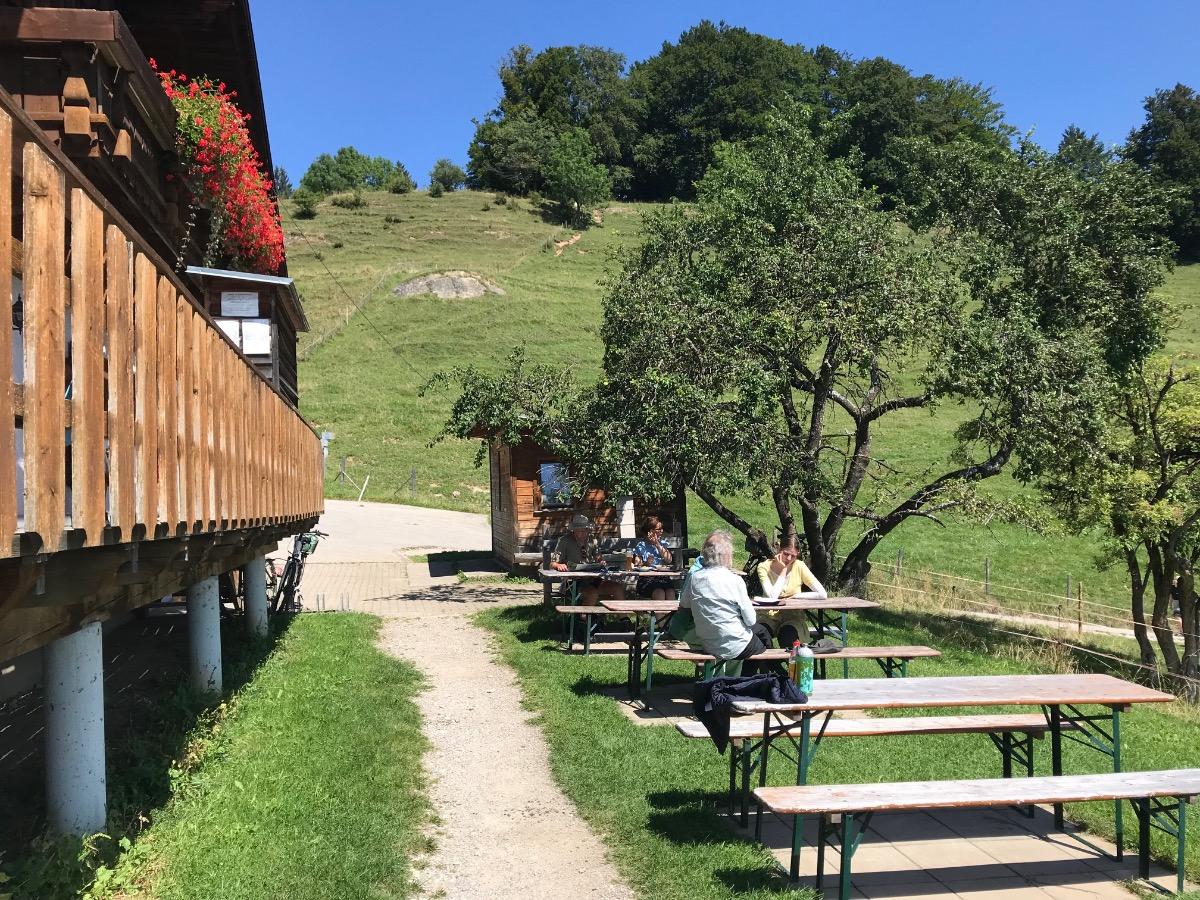 Apropos Politiker. Gestern einen Tagesausflug mit Frau und Kindern ins Allgäu unternommen. Mittags dann Einkehr auf einer abgelegenen Alpe, die man mit dem Auto nur auf (teilweise unbefestigten) Schleichwegen erreichen kann. Deshalb auch nur eine Hand voll Leute vor Ort und mit sehr schönem Ausblick auf das Bergpanorama.