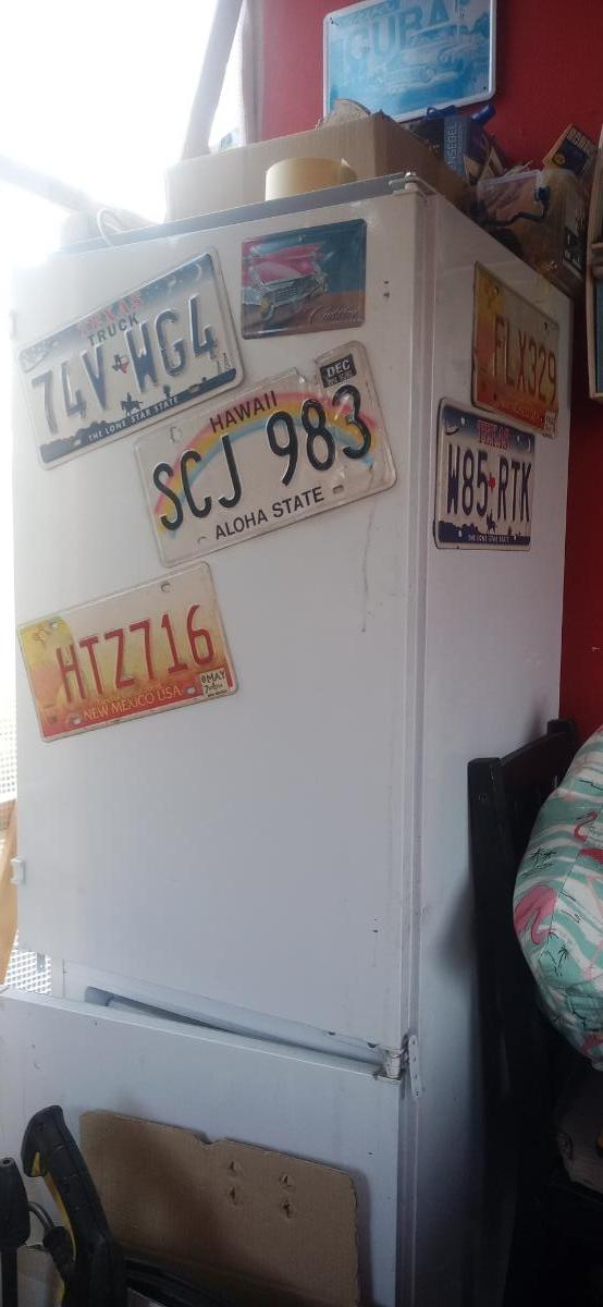 Ich erfeu mich mich über meine US Nr. Schilder am Kühlschrank. Dahinter ist kaltes Bier