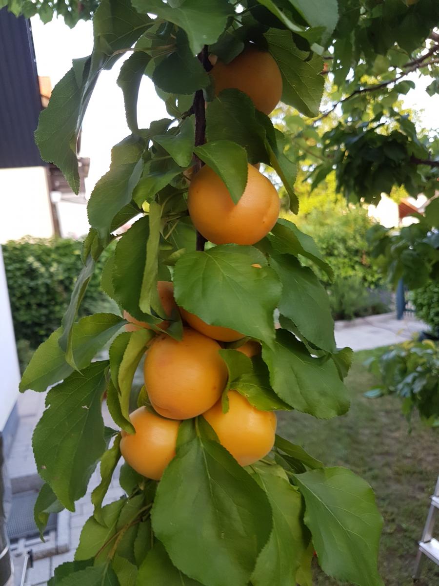 Und was ganz anderes,heute Abend im Garten. In Vorfreude auf Aprikosen/Marillen- Kuchen, Marmelade, Knödel... Klein, aber fein und nicht selbstverständlich in diesen Breiten.