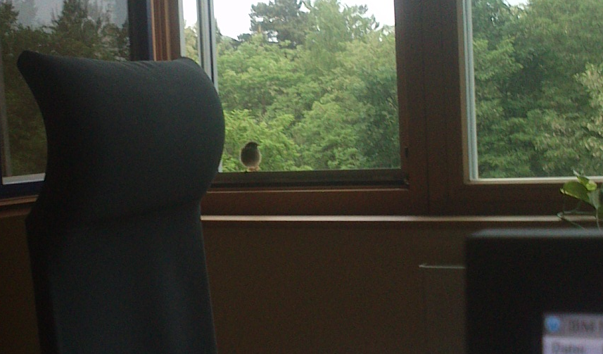 Ach, und einen kleinen neugierigen Piepmatz als Besucher im Büro habe ich auch zu bieten: