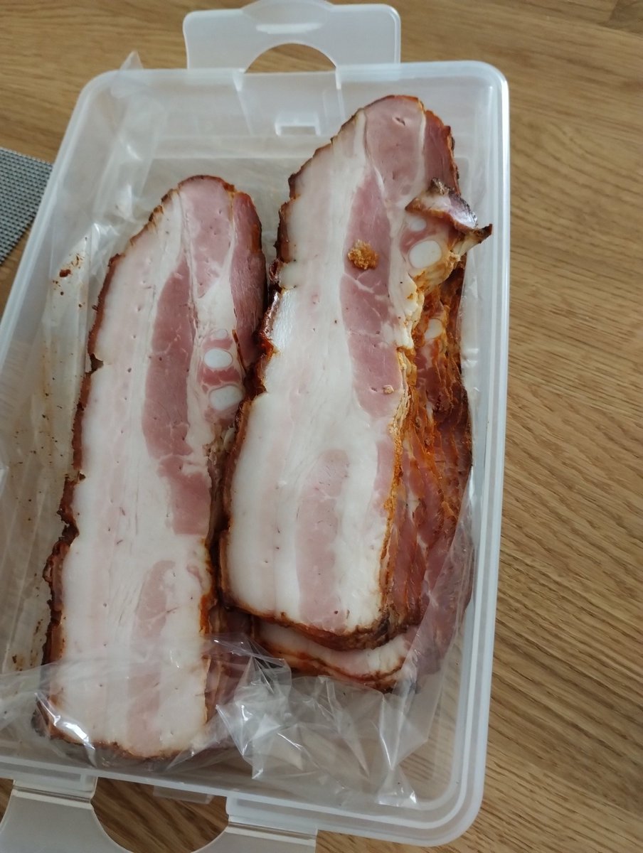 So nennt der Metzger das, der diesen fuer den Wochenmarkt produziert und da verkauft. Ich sagte auch immer Bauchspeck, aber er insistiert 🙂
