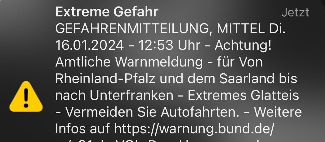 ich bekam eben mit einem irrsinnigen Piepsen eine Gefahrenmitteilung aufs Handy. Auch hier wird vor Schnee bzw. Glatteis gewarnt. Es scheint die Sonne bei mir, +4 Grad. Seltsam sowas…