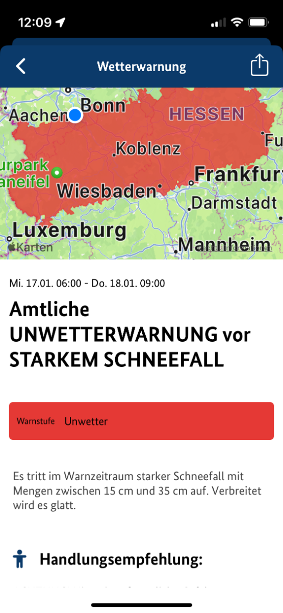 Gerade kommt hier tatsächlich eine offizielle Unwetterwarnung wegen 15 - 35 cm Schnee 🤦‍♂️😂