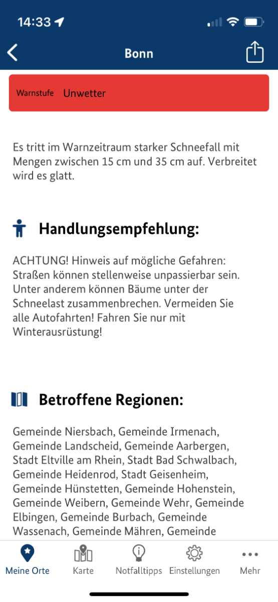 mit einem irrsinnigen Piepsen eine Gefahrenmitteilung aufs Handy.