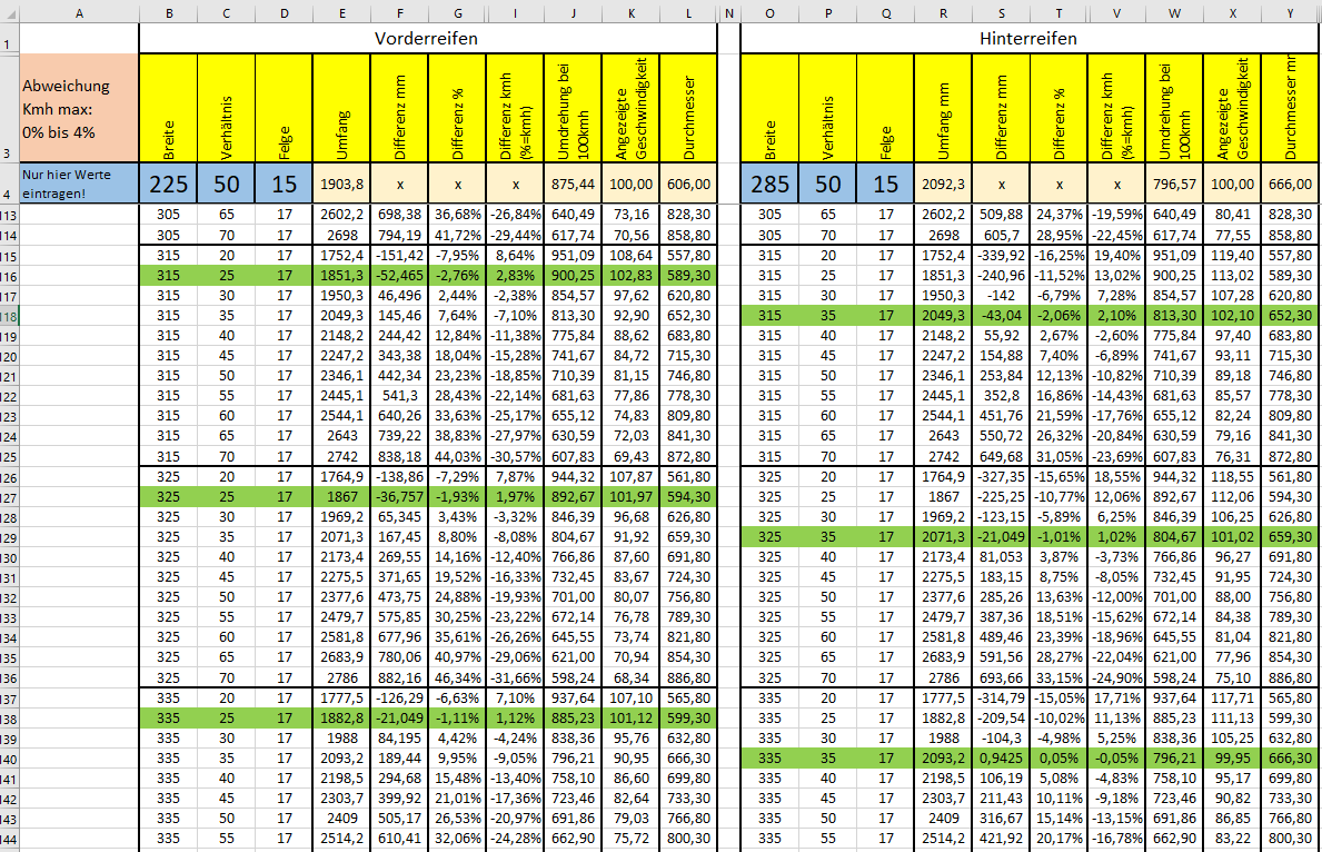 hab mir mal den Spaß gemacht und eine Exeltabelle bzw. einen Reifenrechner erstellt.