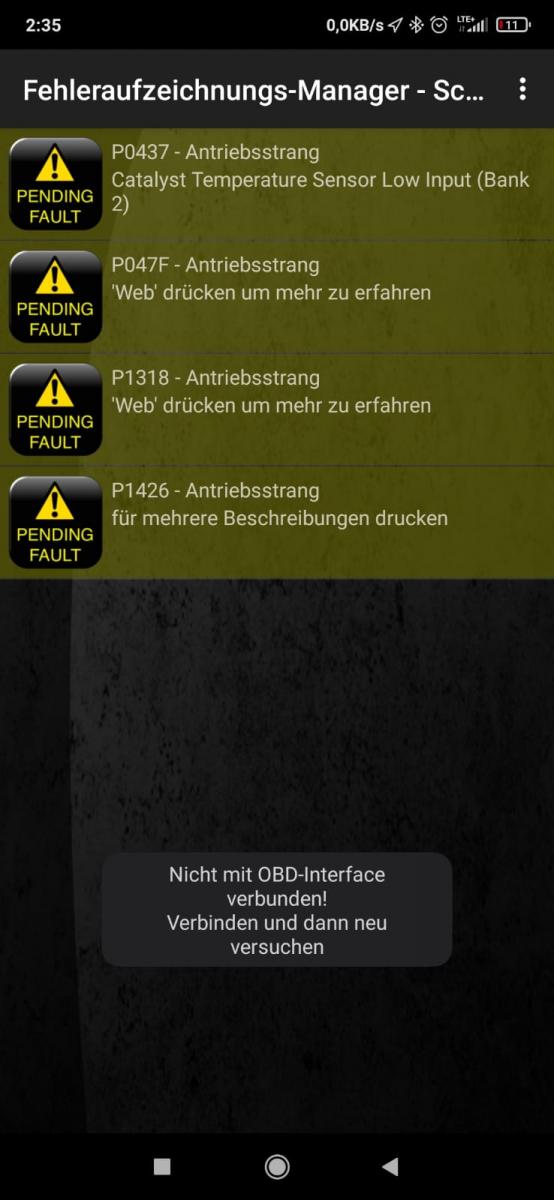 Motorlampe dauerhaft an - Sammelthread mit Fehlercodes