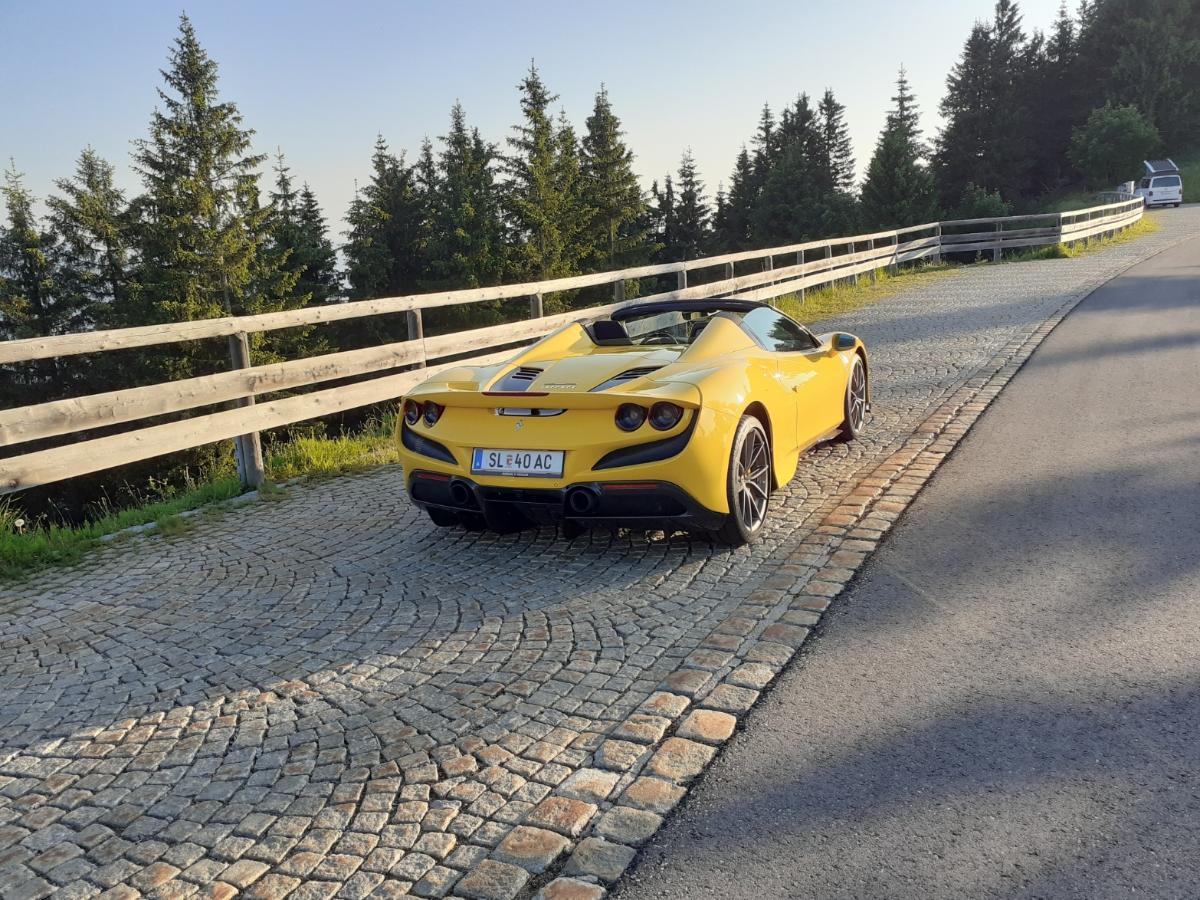 Nachdem ich vor drei Wochen endlich die 1000 Einfahrkilometer hinter mich gebracht habe, habe ich am Sonntag früh morgens (5.30 Uhr) die Roßfeld Panoramastraße ohne Einfahrdrehzahleinschränkung probiert. Die Uhrzeit war genau richtig. Im Tal haben sich schon die ersten Radfahrer auf den Weg gemacht, die Wohnmobilfahrer schliefen noch, sodass die Straße auf den Berg völlig frei war, welch ein Genuss. Also schraubte ich mich offen (natürlich im Rahmen der StVO) um das leider gedämpfte Geschrei hinter mir zu hören, den Berg hoch um dann  oben die fulminante Aussicht zu genießen. Als ich ausstieg roch ich das heiße Öl, was ich bisher bei meinen anderen Fahrzeugen so nicht wahrgenommen habe. Das Ding ist so krass, dass ich auch zu Hause noch immer grinste. Ich wollte gar nicht mehr aussteigen, weshalb ich dann entgegen meinen Plänen noch ein bisschen ins Salzkammergut gefahren bin. Insgesamt 210 km.