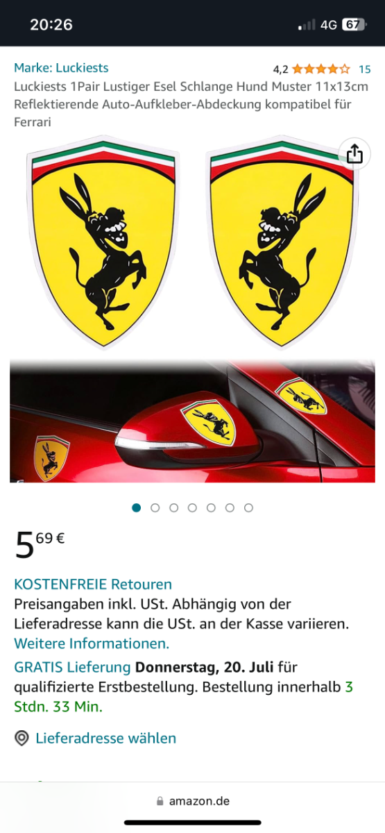 schau doch mal hier zum Thema Zubehör für Ferrari 812 (Anzeige)? Eventuell gibt es dort etwas Passendes.