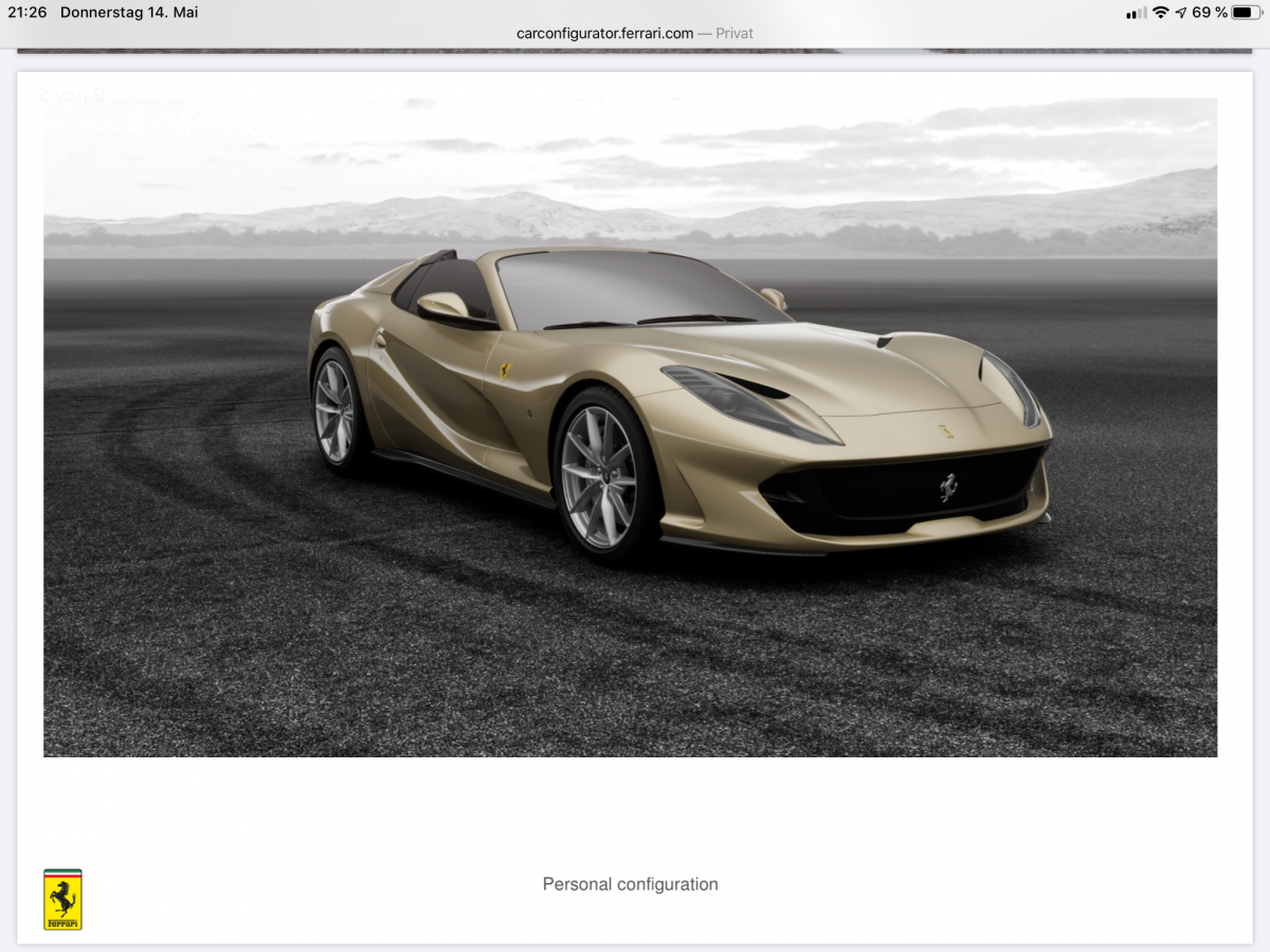 Rosso Corsa ist schon sehr passend für das Kunstwerk 812GTS , für mich mit 170 cm Körpergröße leider 2 Schuhgrößen zu groß , obwohl ich ihn gerne besitzen würde .