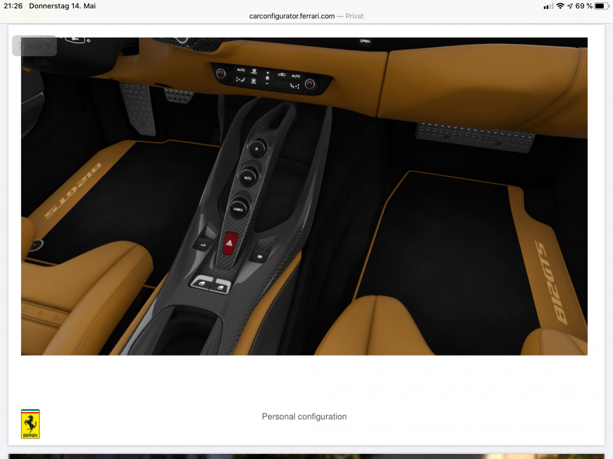 Innen Iroko mit Auzzuro Stitching inkl. Cavallino, beim Carbon werde ich mich auf das Notwendigste beschränken, da mir die Aufpreis zu heftigst erscheinen und für mein Dafürhalten jegliches Bodenmass verlassen haben. (wenn man bei diesem Fahrzeug überhaupt davon sprechen darf)