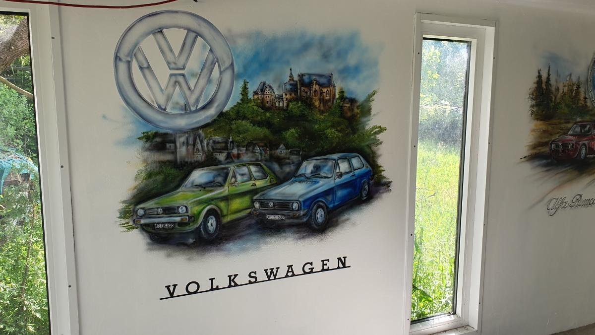 Ja, zu jeder Marke gibt es mindestens ein Auto. Die Polo's stehen in der Scheune, von Alfa haben wir einen 74er Bertone, den Boxster fährt Moni im Sommer, den 360 Spider kennst Du und dann ist da noch der 560 SEL. Die Bilder hat der Airbrusher ausgesucht. Nur das Polo-Bild mit dem Marburger Schloß war meine Idee!