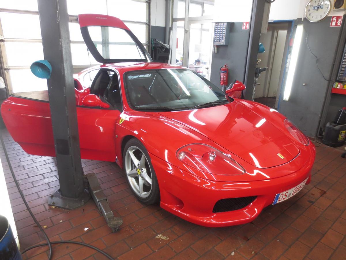 Und zum eigentlichen Fahrzeug, den 360. Es war eigentlich ein Spontankauf. Das Geld lag auf der Bank und ich brauchte es nicht. Der Bankberater empfahl mir Aktien zuzulegen, oder in einen Immobilienfonds einzuzahlen. Für meinen Geschmack beides überhitzt, und was liegt da näher für einen mit Benzin im Blut das Geld in ein Spaßobjekt „anzulegen“? Zur Auswahl standen ein Gallardo, eine Cornette oder Ferrari. Das es ein Ferrari wurde lag ein der schönen Form. Es sollte unbedingt ein Handschalter und kein Cabrio werden. Das es ausgerechnet ein 360 und kein 430iger wurde liegt daran, dass es die 430iger fast nur als Automatik gibt und ich denke das Sie vom Preis noch fallen werden. Das kann natürlich mit dem 360iger auch passieren, aber ich hoffe das sich das in Grenzen halten wird. Und wenn nicht, den Spaß kann einem keiner nehmen.