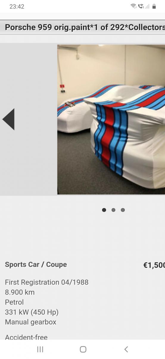 Exakt das gleiche Foto hat der Verkäufer für ein Inserat eines Porsche 959 verwendet.