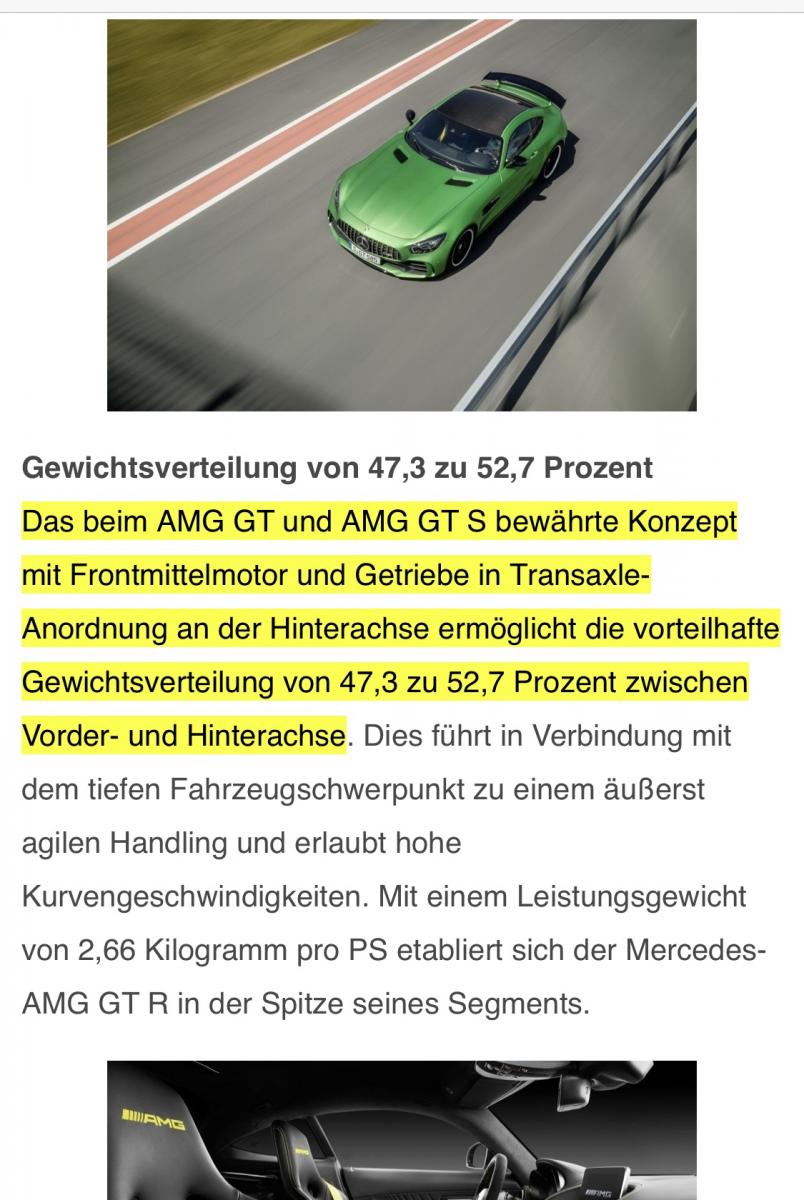 Lieber Richard, wenn Du die Zeit und Möglichkeit hast, schaue mal unter die Motorhaube eines beliebigen AMG GT zum Thema Motorposition. Anbei zu Deiner Info: