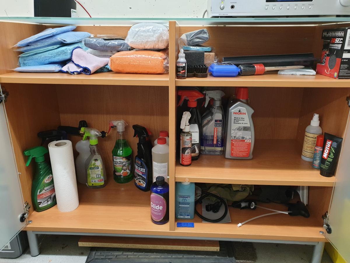 Mehrere Pinsel verschiedener Größe, all purpose cleaner APC in verschiedenen Verdünnungen und viel Muskelschmalz haben mit bisher immer ausgereicht.