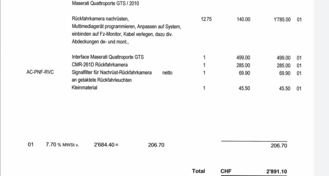 Ich überlege mir bei meinem Quattroporte eine Rückfahrkamera nachrüsten zu lassen.