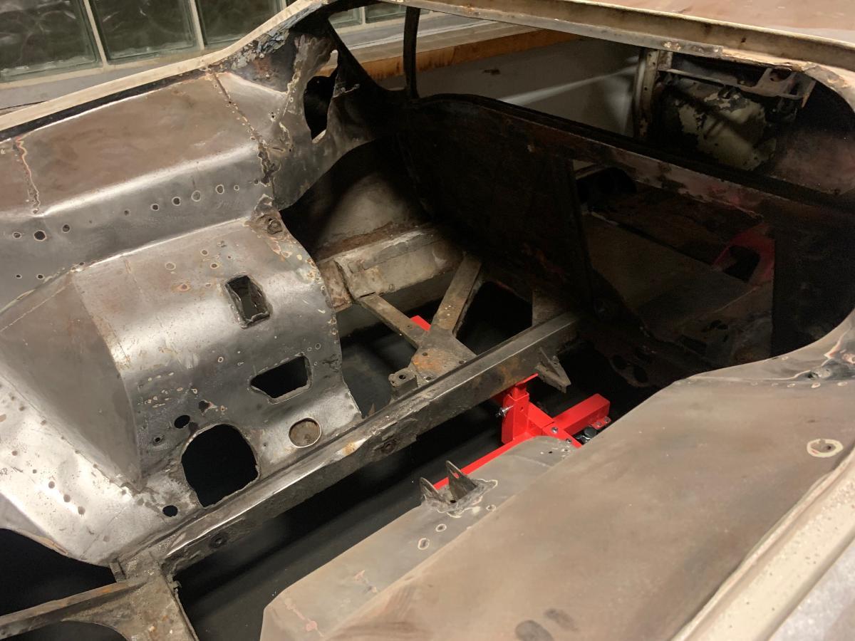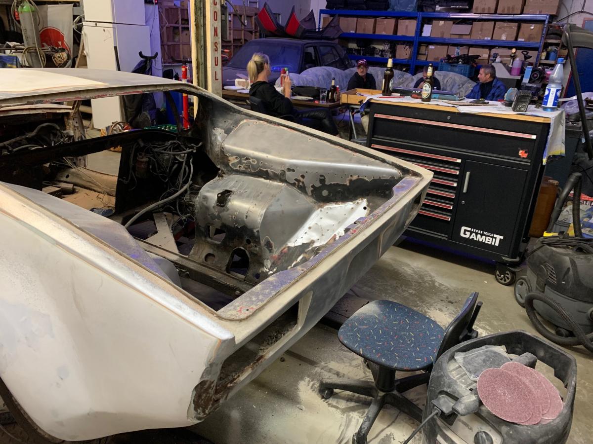 Dort wird das Auto nun noch fertig entlackt, an den Sicken, Kanten usw. ist ja noch nix gemacht. Dann wird alles geschweißt und er wird mit Epoxy grundiert.