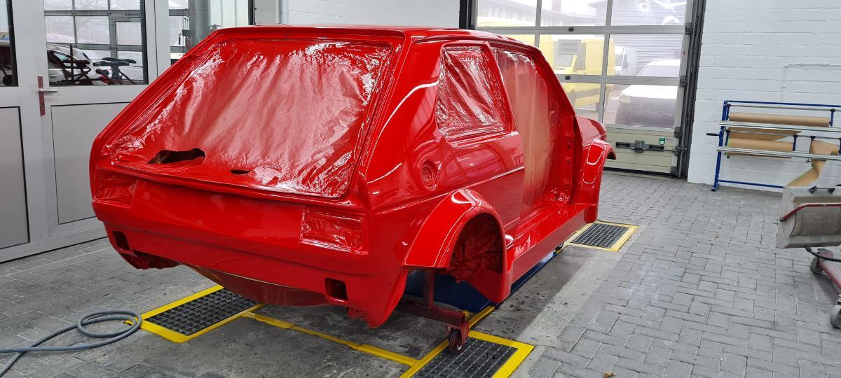 Der weiße 2er Golf auf dem Bild war noch der Formenbau, er wog sicher 150-200 Kilogramm mehr wie normal.    Er wurde weiß lackiert für die Fotos zurechtgemacht, direkt nach dem shooting wurde die Negativform gemacht. Was eine Arbeit, danach 150 -200 Kilo Spachtel wieder abklopfen 🤣  Lang ists her.