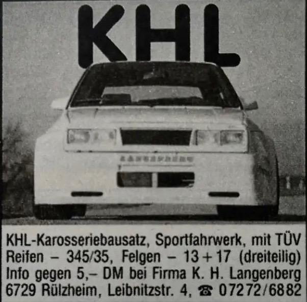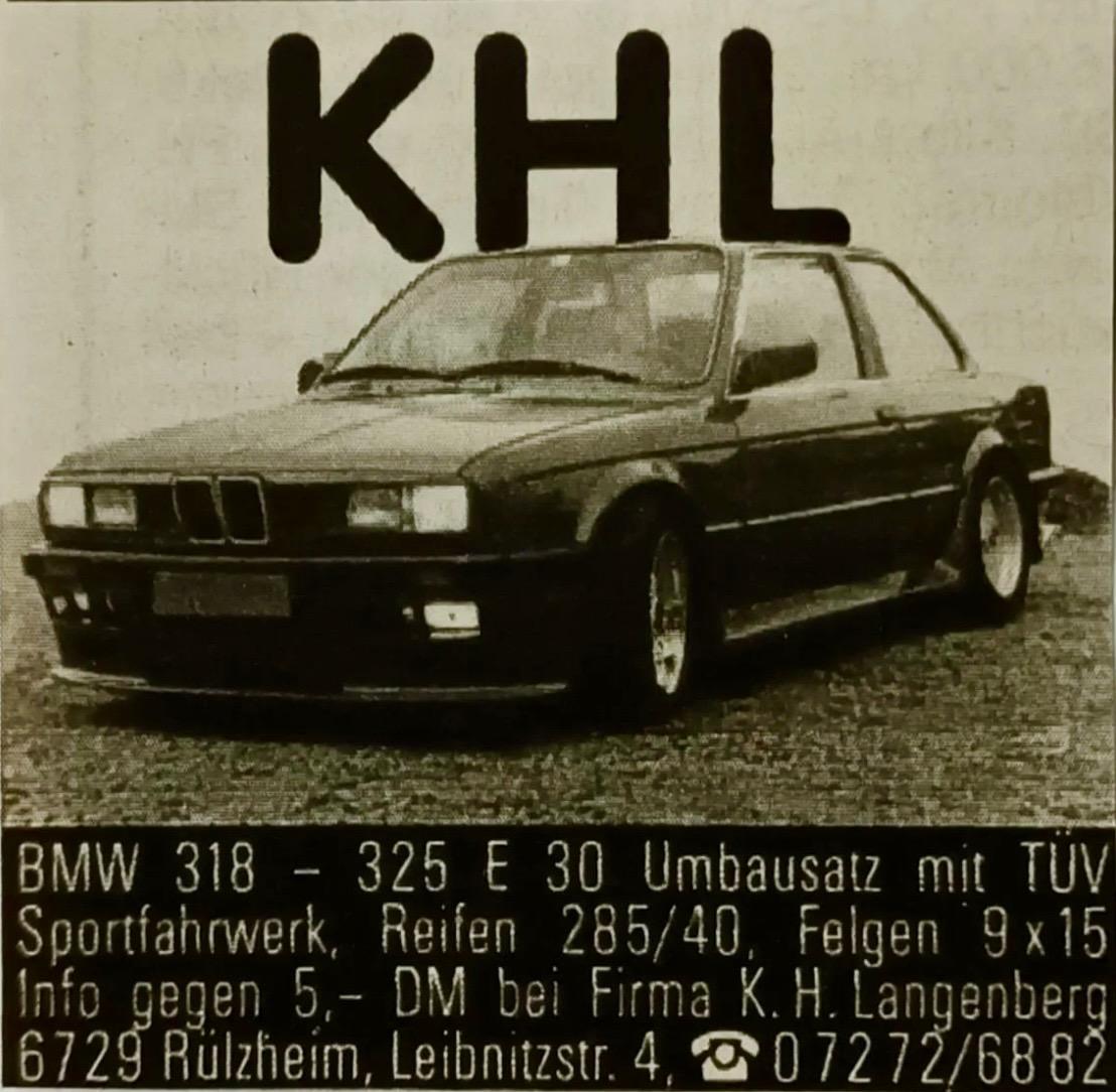 Ich habe mir 1986 einen 1502 gekauft und "neu aufgebaut" (er war wirklich gestrippt bis zur Rohkarosse). Und der musste etwas breiter sein. Bin dann per Zufall auf einen Katalog von KHL gestossen - und genau das war´s. Ich habe die Verbreiterungen selbst geholt, wurde meiner Erinnerung nach sehr gut beraten und hab´ alles montiert. 1988 (ja - so lange hat´s gedauert) bin ich dann zu KHL gefahren. Dort wurde mein BMW eingehend geprüft und für TÜV-fähig befunden. Dann ging´s mit ich glaube vier/fünf Autos und in wilder Fahrt von der Werkstatt zum TÜV. Es wurde mir auch noch ein 1,8 Liter Motor ohne große Probleme eingetragen. Und dann wurde ich wieder nach Hause geschickt. Alles professionell und ohne Komplikationen. Ich war sehr stolz auf den 02er. Mit dem sind wir dann im gleichen Jhar in die Nähe von Split in Urlaub gefahren - alles schön, alles gut. Es waren herrliche Zeiten.