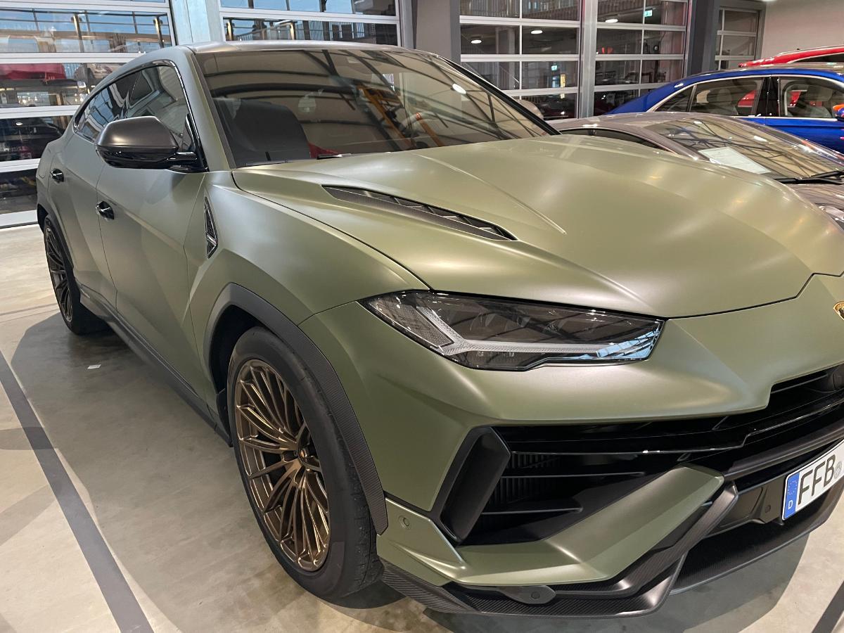 na, welche Farbe wurde es? Wir haben den Verde mantis, haben nach einem weissen Urus ( der auch sehr geil war ) jetzt den Verde mantis und haben ihn matt foliert ( selbstheilende Steinschlagfolie ). Die Farbpigmente kommen dennoch toll durch die Folie. Wir hatten auch den Gedanken vom Sattsehen, aber bis jetzt absolut nicht. Das Umfeld war auch geteilter Meinubg, jetzt wo er da ist, alle 👍. Wir sind sehr gespannt was es final wurde.