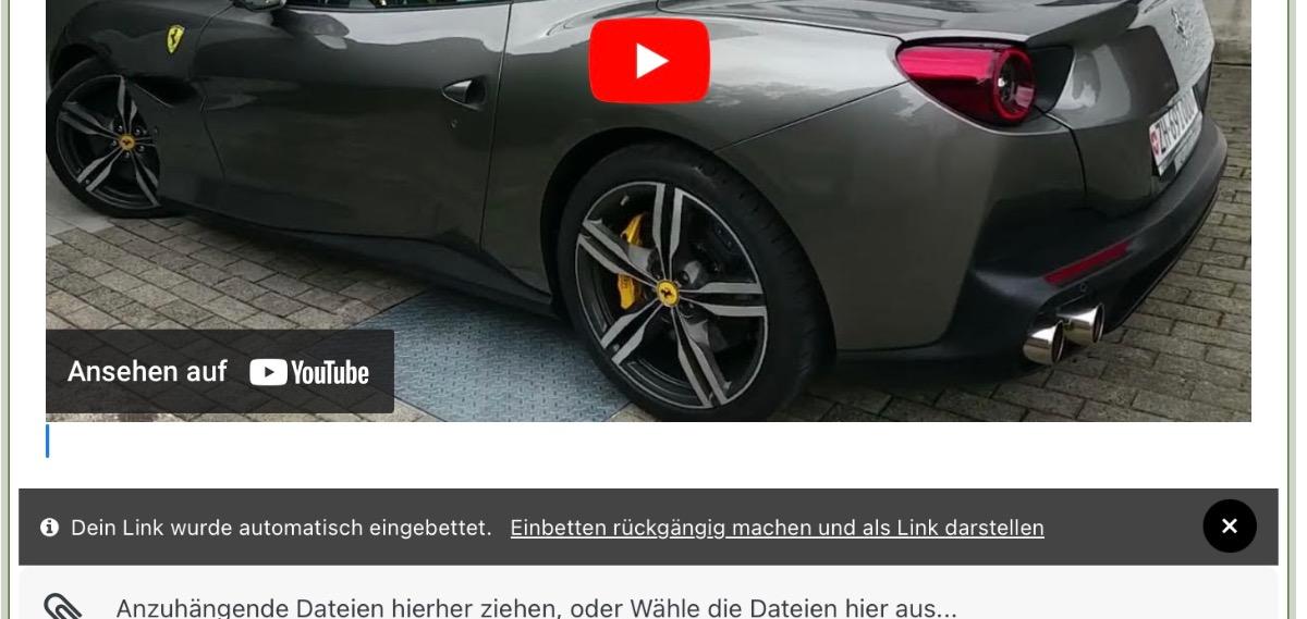 YouTube muss da was geändert haben. Wenn ich auf dem Video die Option „Link kopieren“ wähle, dann wurde früher das Video automatisch eingefügt. Jetzt kommt die Show mit dem Captcha, das man nicht eingeben kann. Wie ich den kopierten Link als Text eingeben kann habe ich noch nicht herausgefunden.