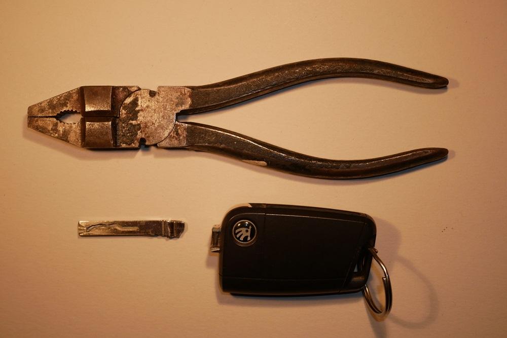 Da wir ja ständig eine Kombizange (Schweizer Taschenmesser geht wohl auch) dabei haben, konnte der Schlüssel  ins Zündschloss  gesteckt und gedreht werden😁