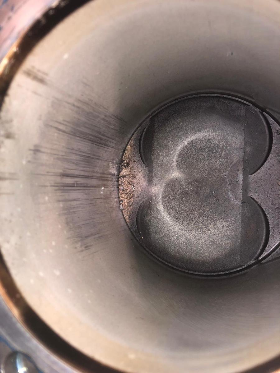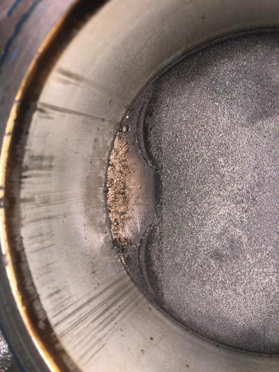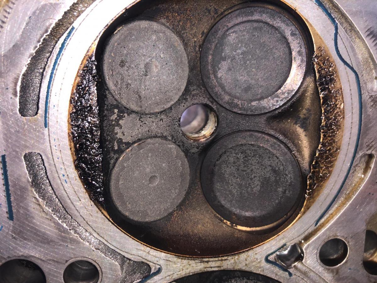 Sieht nach typischem Klopfschaden aus. Schlechter Sprit oder Klopfsensor kaputt.