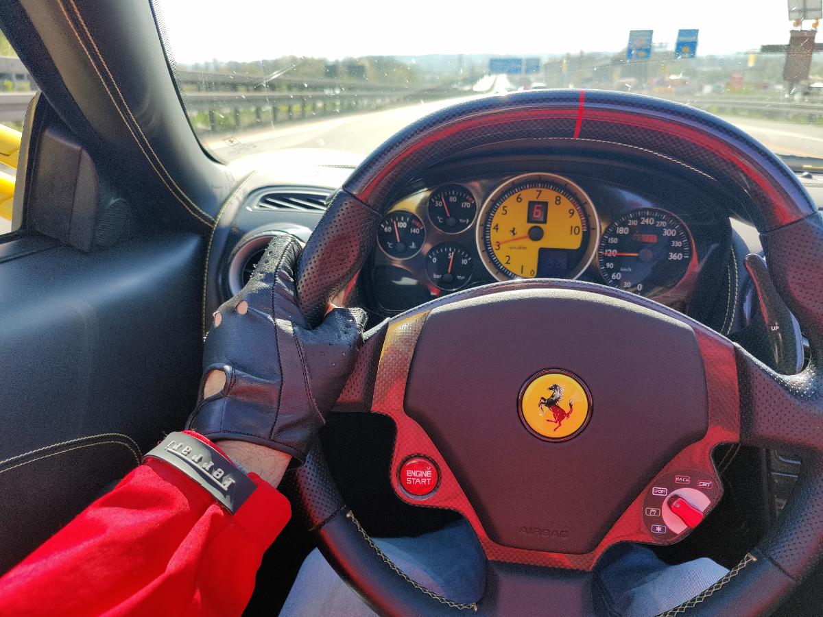 Das Fahrzeug ging wie immer erstmal zum Mario. Alles checken und in diesem Fall auch wieder die H&R Federn einbauen, etwas tiefer schrauben, Achsvermessung, 10er Distanzscheiben zu den OZ drauf, Achsvermessung nach meinen Wünschen und für alles eine Einzelabnahme beim TÜV. Warum das alles? Mit dieser Kombi hatte ich super Erfahrungen bei meinem schwarzen F430 Spider gemacht und wenn man mal eine gute Kombi gefunden hat, dann lässt man die in der Regel auch so. :wink: