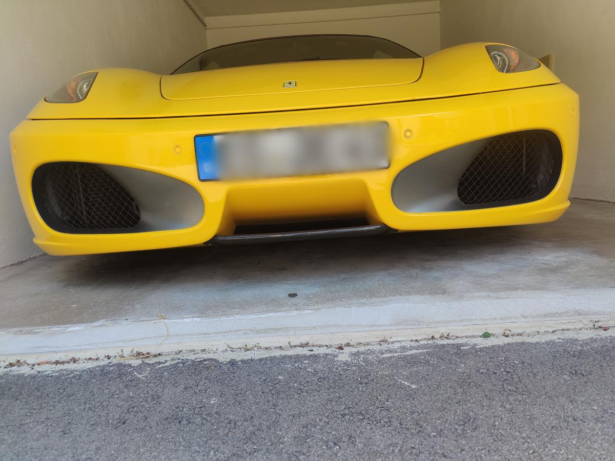 Danke! ☺️ Täuscht vielleicht auch etwas durch den Winkel vom Foto. Sooooo tief ist sie gar nicht. Kann kleinere Bordsteine hoch, auf der Straße setze ich auch nicht auf und sogar Abfahrten in Tiefgarage die nicht so steil ist schaffe ich. Ich glaube das ist alles ein guter Kompromiss. Will ja auch noch sportlich unterwegs sein ohne ständig irgendwo zu kratzen. Dabei hast du recht - vorne mittig ist meistens die leidende Zone beim F430. Kann gerne mal vorne, Schweller und Radhauskante messen. Hier ein Foto von vorne.
