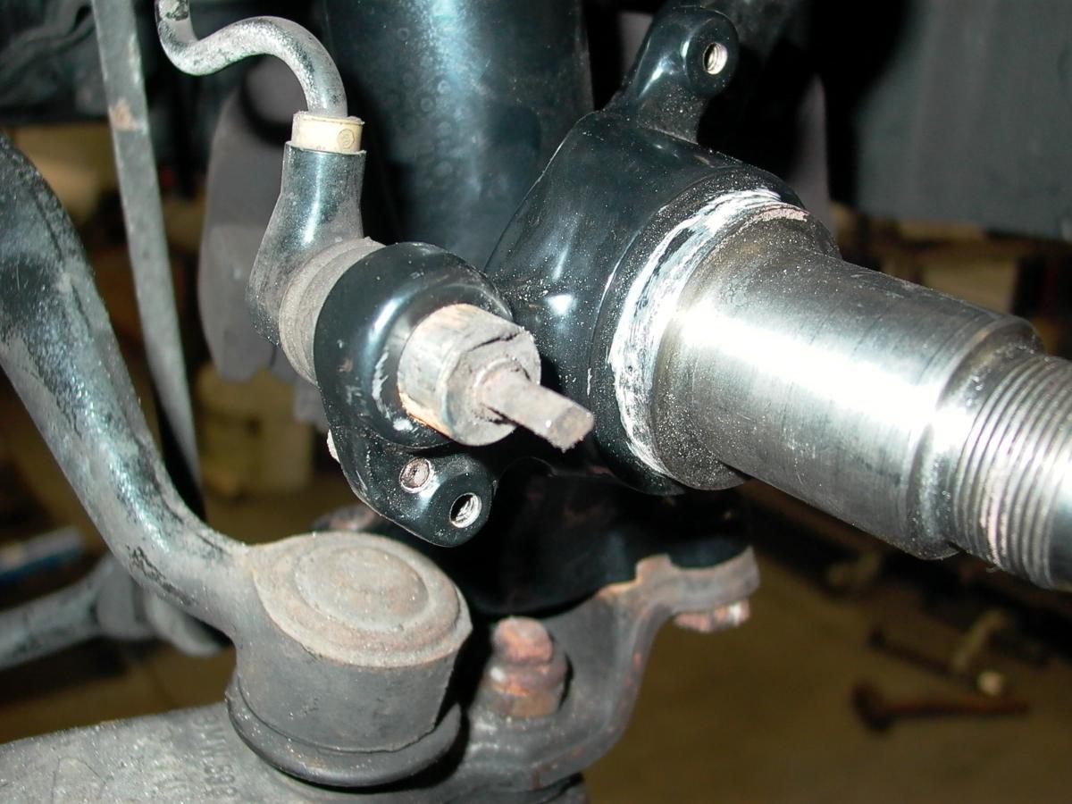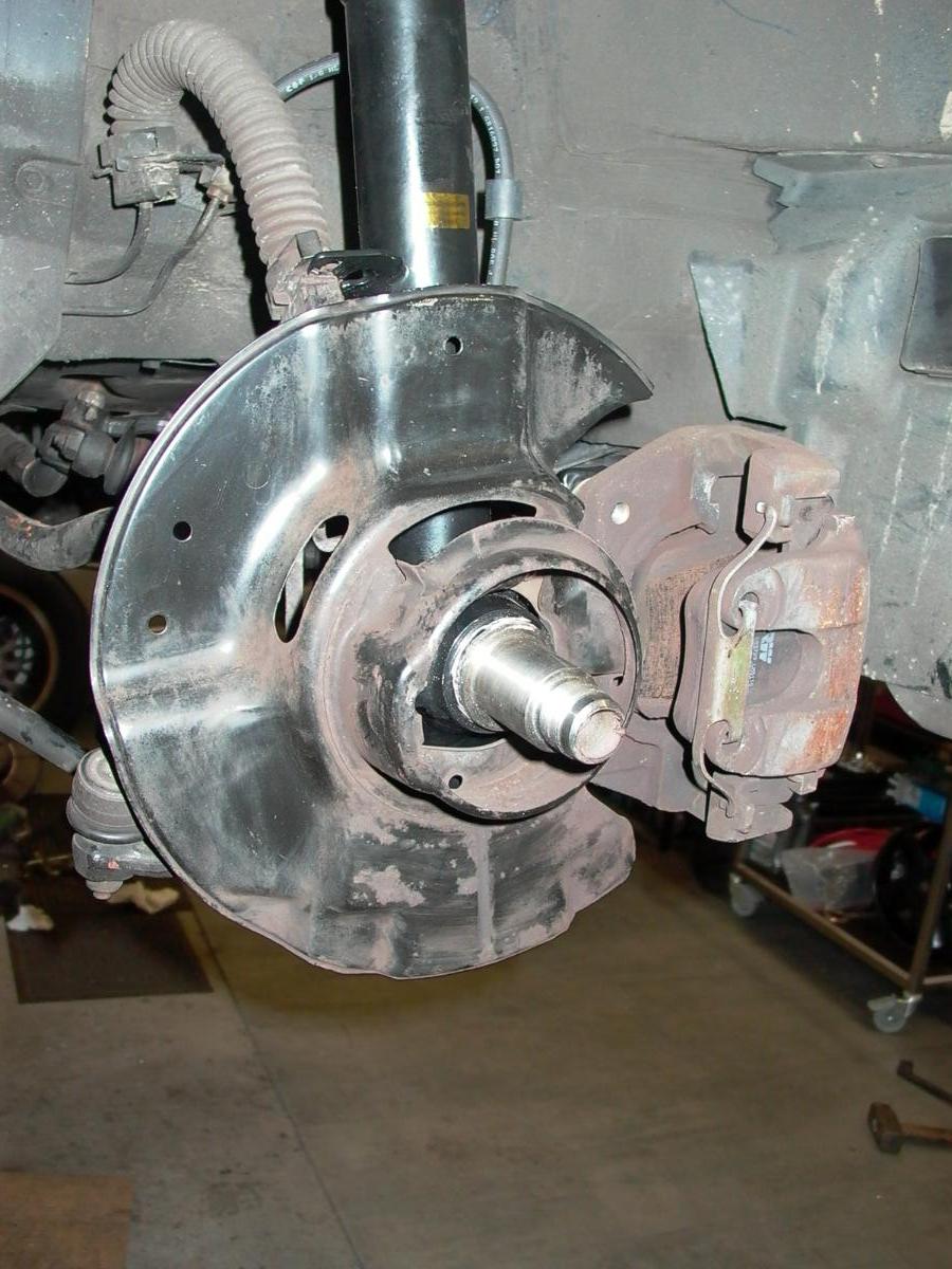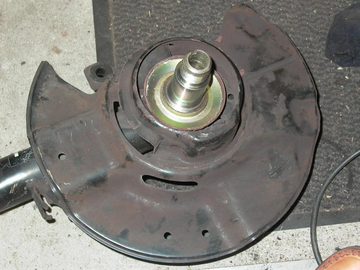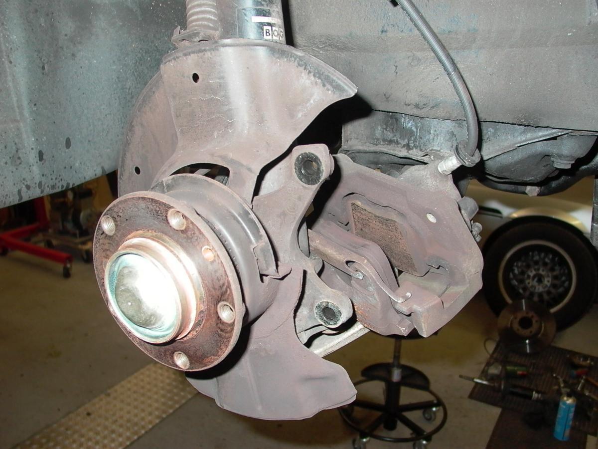 Soweit fertig. Jetzt kommen die neuen Naben drauf. Mir wurden leider die falschen geliefert und ich mußte neu bestellen. Es gibt sogenannte symmetrische und asymmetrische Naben. Das Gewinde zum Fixieren der Bremsscheiben ist einmal symmetrisch zwischen zwei Radbolzenlöchern, einmal asymmetrisch. Wäre im Prinzip wurscht, wenn nicht die ABS Ringe beider Versionen unterschiedliche Durchmesser hätten ...