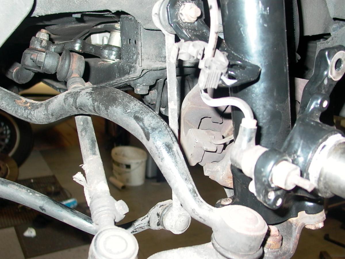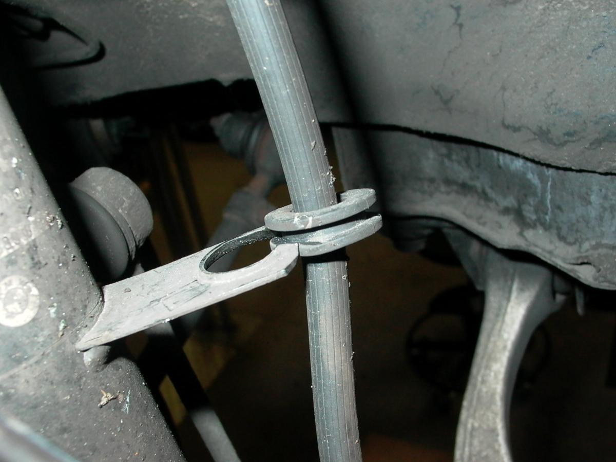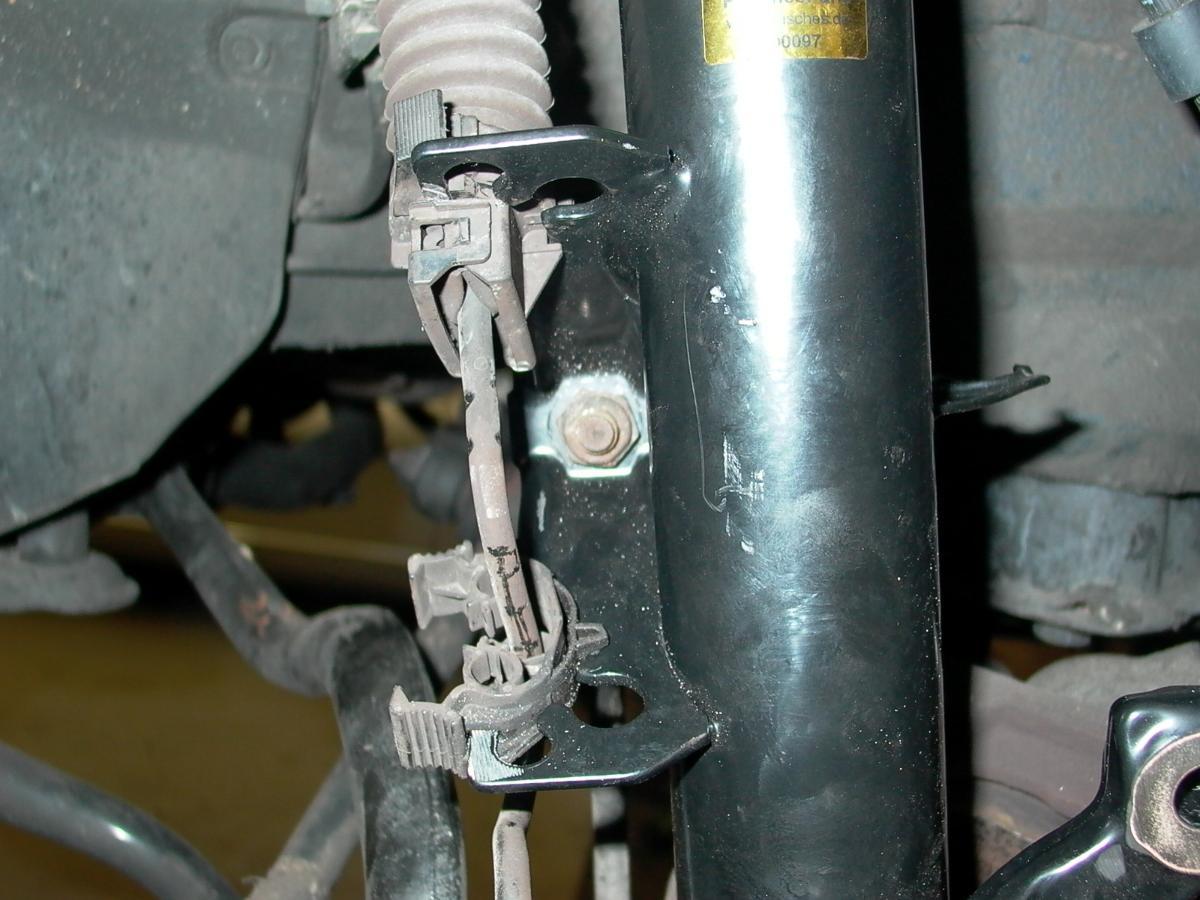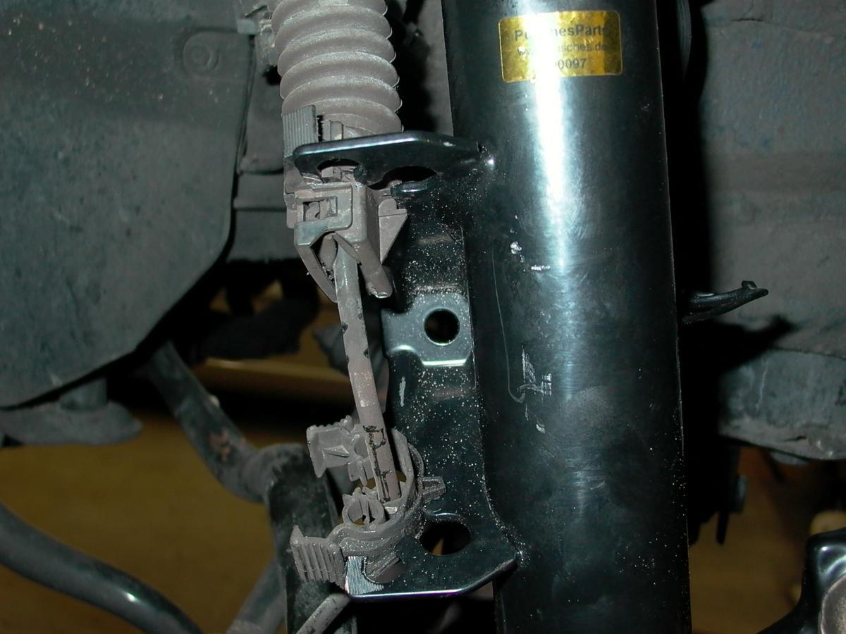 Dann müssen die Plastikhalter für Leitungen, links ABS + Verschleißanzeige, rechts nur ABS, ab. Vorsicht, die sind zerbrechlich.